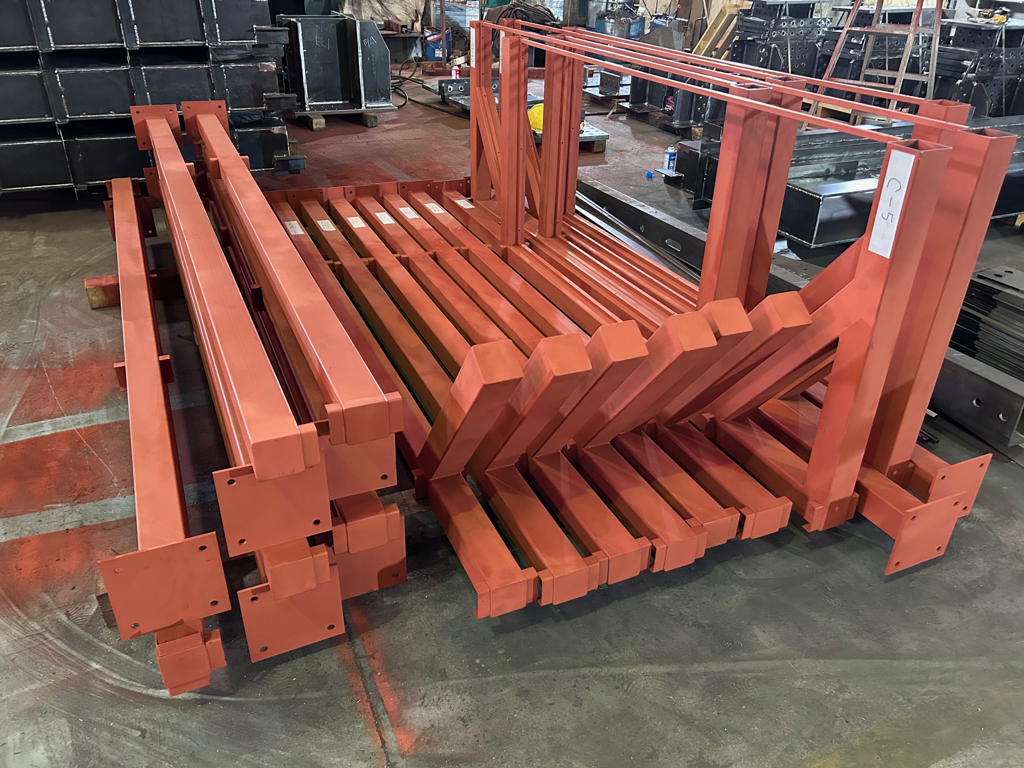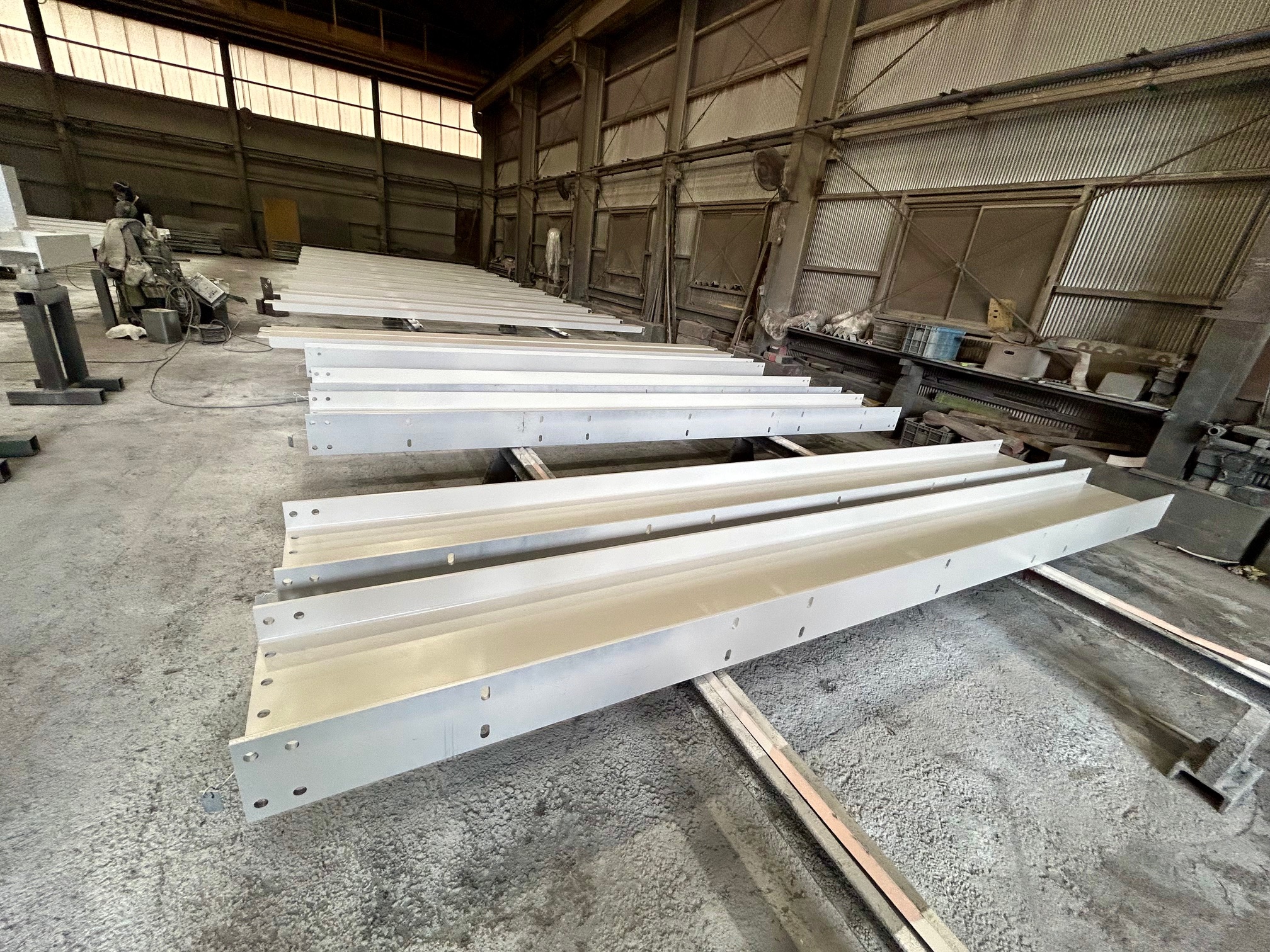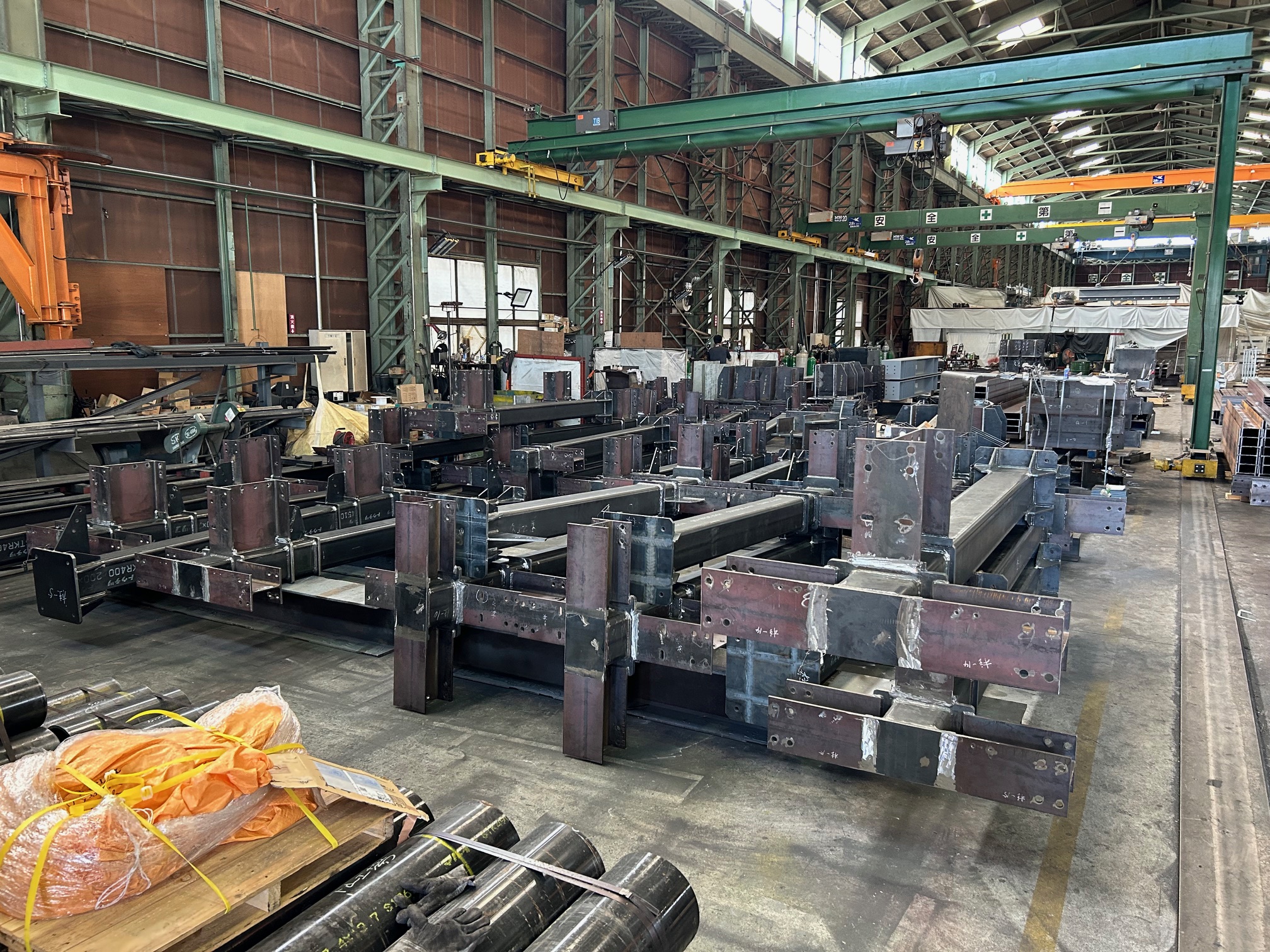 総重量:43トン 材料〜加工、溶接、塗装、現場搬入 材料の準備から現場搬入まで、急なご依頼にもお客様のご希望に合わせ、責任を持って対応いたします。 業者とのチームワークを活かし、プロの集団が全力でお困りごとにお応えいたします。お気軽にご相談ください。